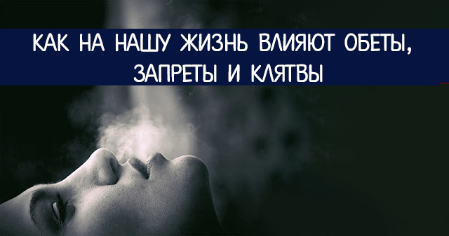 Иногда человека преследуют клятвы и зароки, данные им в прошлой жизни. Давнишний обет нищенствования может стать причиной финансовых затруднений. Обет безбрачия может негативно сказаться на личных взаимоотношениях. Обет самоотречения приводит к тому, что человек начинает сам себе вредить. Если отречься от давних клятв — весь этот негатив уйдет.